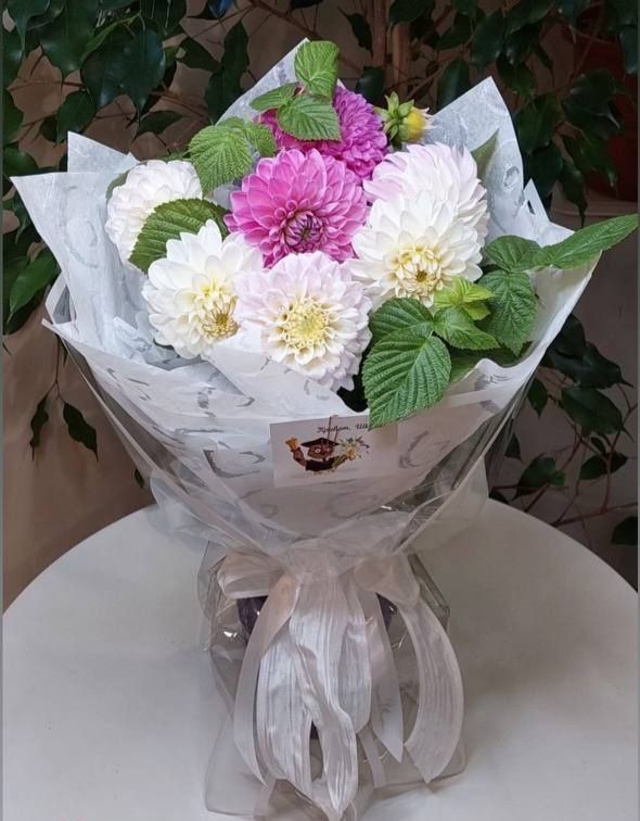 Букет с георгинами и малиной