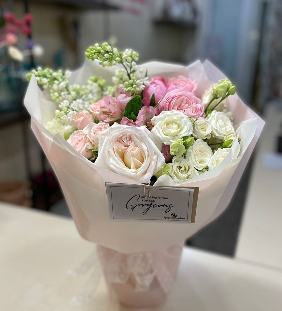 Букет из роз Вайт Охара и сирени