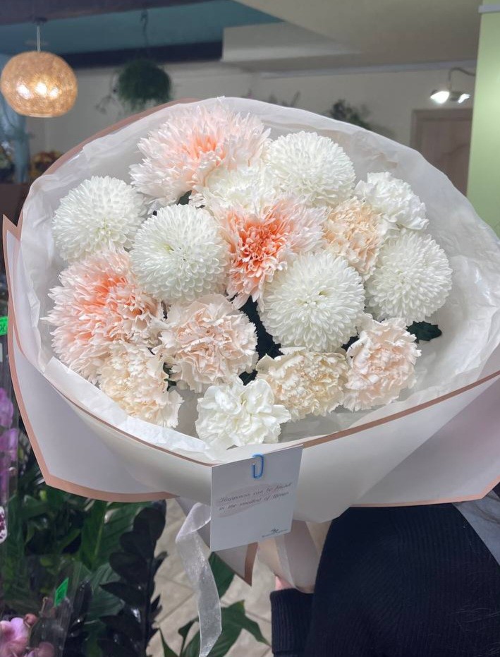 Букет с хризантемами и гвоздиками